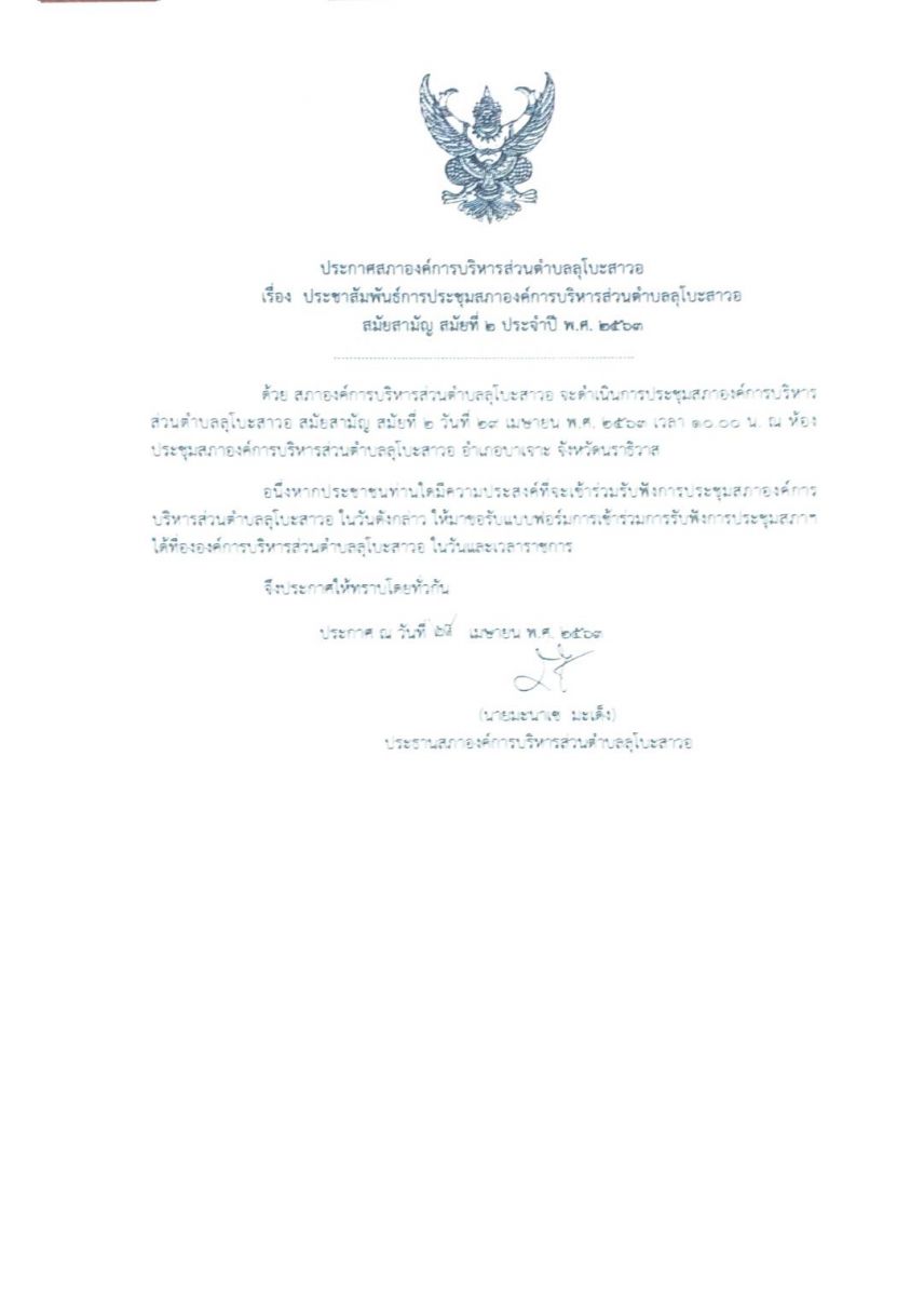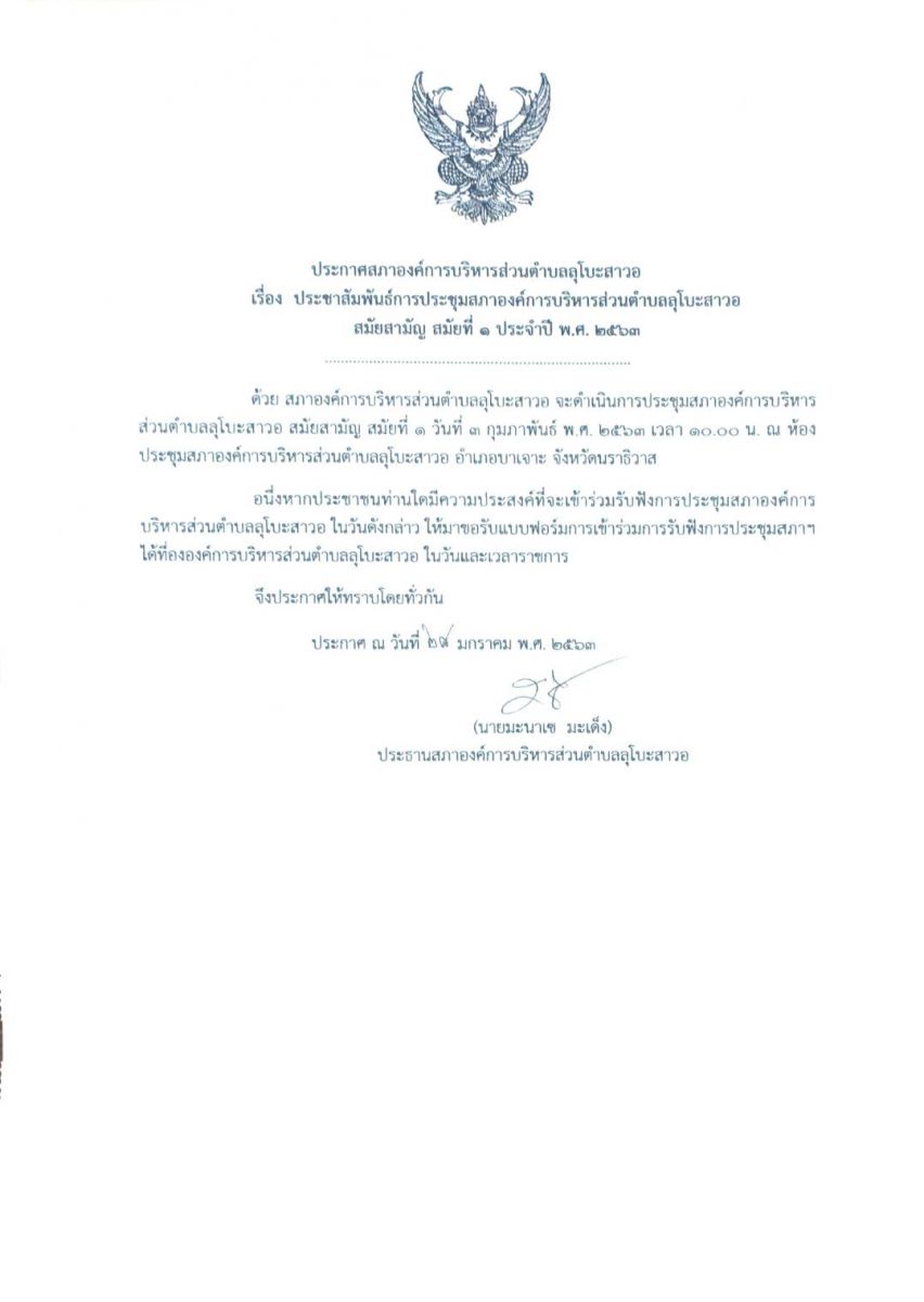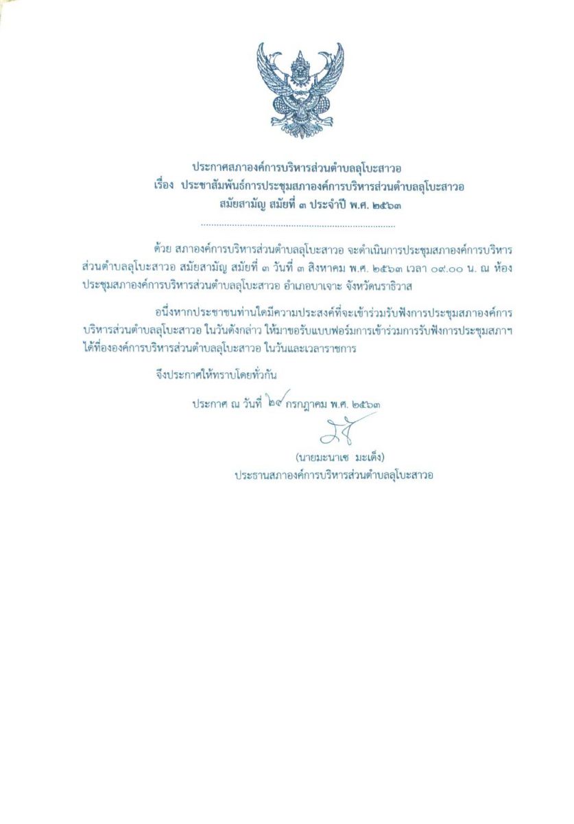 การเชิญประชุมสภาองค์การบริหารส่วนตำบลลุโบะสาวอ ประจำปี พ.ศ. 2565