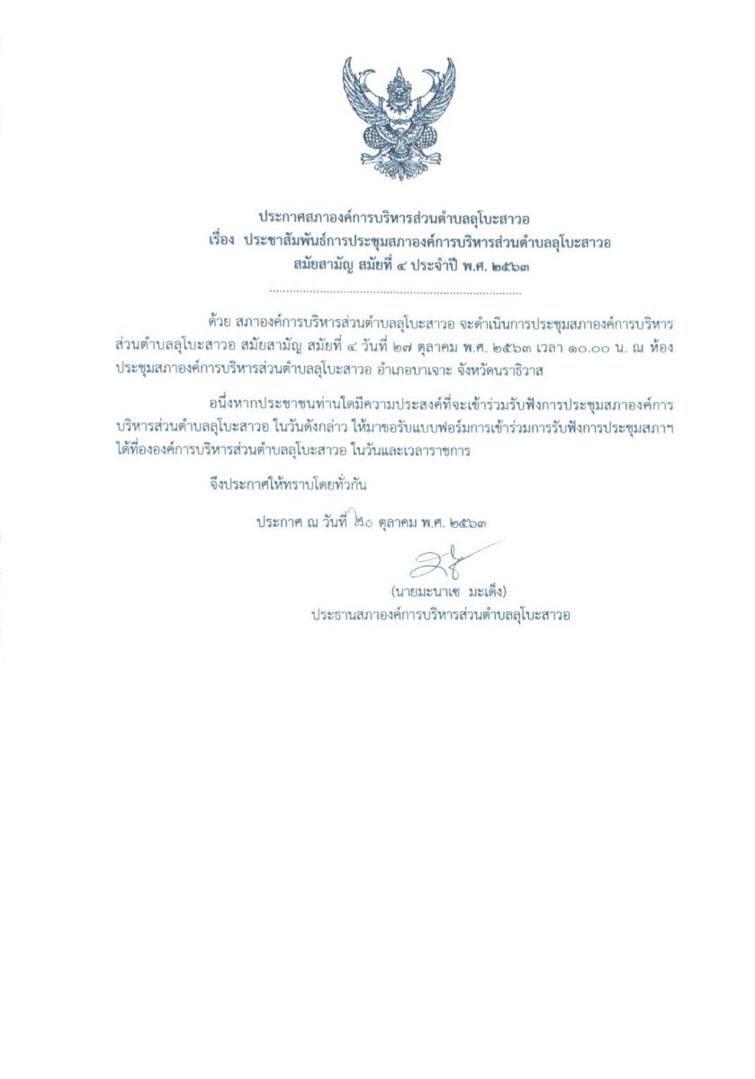 การเรียกประชุมสภาองค์การบริหารส่วนตำบลลุโบะสาวอ ประจำปี พ.ศ. 2565